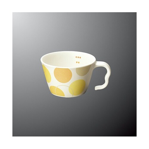 持ちやすいから、飲みやすい、すべての人にやさしいカップ。容量の目安となるポイント柄をつけました。 |