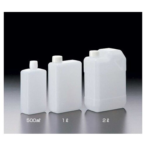 置き場の無駄を省ける角型タイプ中栓付き、細口ポリ瓶 |