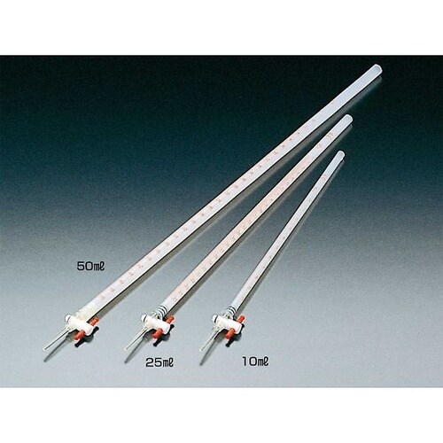 スタンダードはポリプロピレン製ビューレットコック部分はPMP樹脂製でフッ素樹脂のプラグ付き |