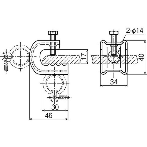 背面部と底面部の2箇所で任意の角度に電線管を支持できます。