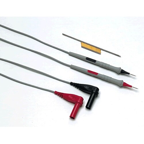 非常に微細で測定しにくいテスト・ポイントに最適5セットの交換用チップ(金メッキのスプリング内蔵チップ3セットと、ステンレスの交換用チップ2セット)プローブ長:102mmリード長:1m(赤、黒の各1本の |
