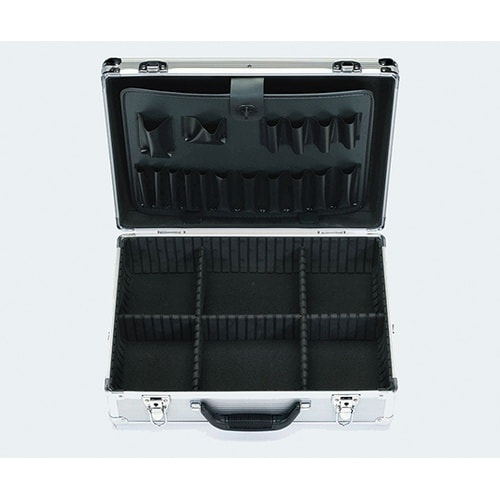 調整式仕切板5枚付。収納に便利なシールパレット付。ラウンドコーナーフレーム使用により、アルミ独特の高級感と強度を確保しました。 |