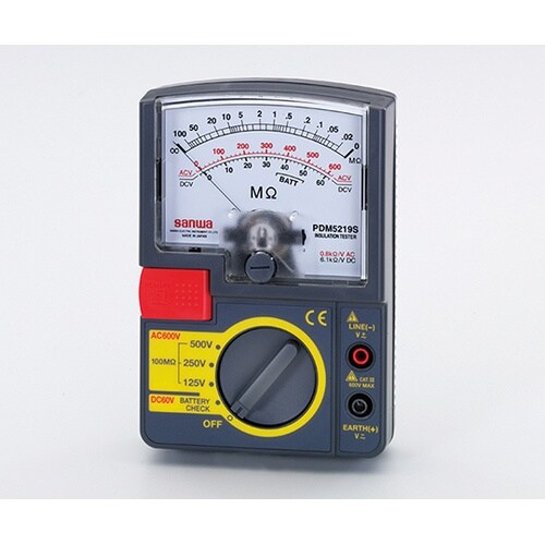 単発および連続測定が可能な絶縁抵抗測定スイッチ。測定後、充電された電圧を放電するディスチャージ機能搭載。内蔵電池容量が確認できるインナーバッテリーチェック機能。100MΩフルスケールの単一目盛採用。0 |