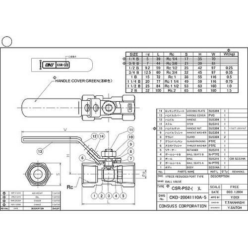 コンサス ネジ込レデュースボールバルブ CSR−S (316) 20A ロックプレート付 A052-6833
