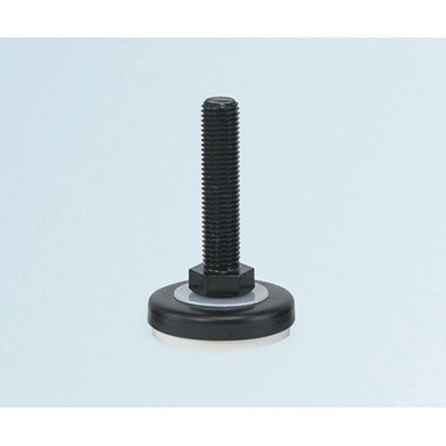 足ゴムに非汚染性に優れたシリコンゴムを採用したアジャスターフットです。車輪径が大きいキャスターと併用できるようネジ部が長くなっています。取付けはドライバーで簡単にできるように、底面に十字穴を設けてあり |
