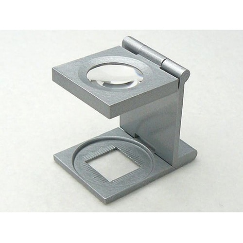 高倍率繊維織物の糸数の測定を目的として作られたルーペです。折りたたみ式でコンパクトに収納できて持ち運びにも便利です。1mm刻みの目盛付で糸数をより観察・計測しやすい設計です。レンズはキズがつきにくく透 |