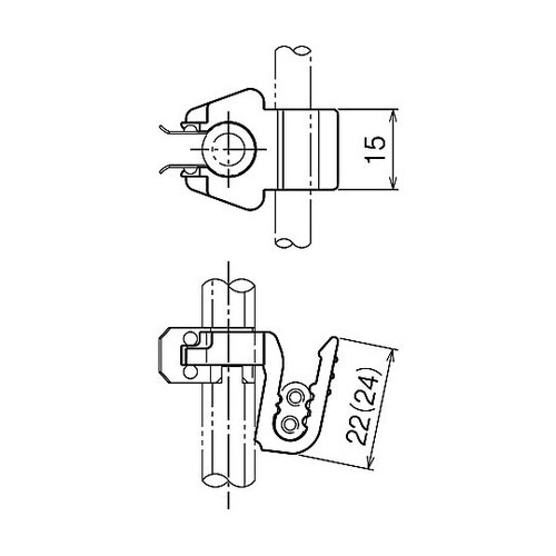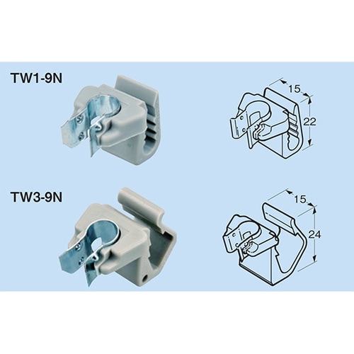 吊りボルトに押し込んで簡単に取り付けできます。樹脂製の本体はケーブルを傷つけない安全構造です。自動火災報知設備、排煙設備の警報用電線支持に最適です。 |