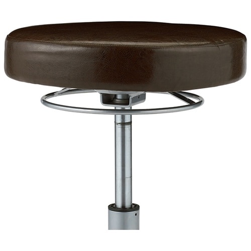 ダメージレザー張りのハイタイプチェア。立ち仕事のサポートにも360どの方向からも高さ調節できるリングレバー安定した着座が可能な足置きリング付きガススプリング上下昇降機構 |