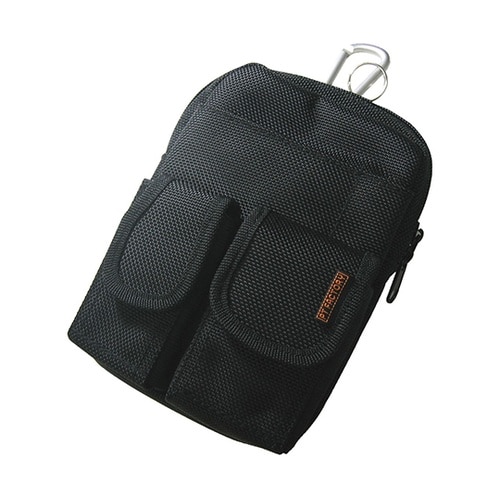 耐久性のある黒ナイロン製シンプルなデザイン収納力のある薄型ファスナーバッグカラビナ付きメインのファスナーポケットは薄型サイズA6メモ帳、財布、名刺ケース等私物と仕事用の備品がひとまとめに収納できる前ポ |