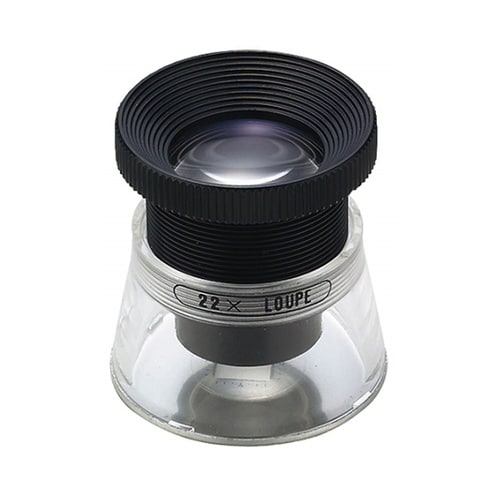 高倍率アルミのプレートに目盛が刻まれており0.1mmを計測できる高倍率目盛付ルーペ(虫眼鏡・拡大鏡・天眼鏡)です。レンズは透明度の高い白ガラスレンズを使用し、歪みを抑えた設計でプロも愛用できる高性能品 |