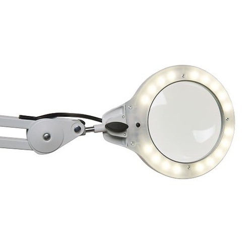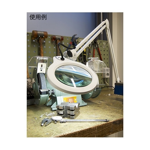 大口径Φ127mmの大径ガラスレンズと、50,000時間(設計値)の寿命を持つ円形状のLED照明を搭載。レンズは対象物を照らすのに理想的な円形照明の中心に配置してあり、影の無い拡大像を得る事が可能。オ |