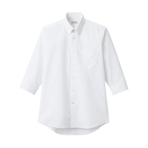 幅広いシーンで活躍する、定番ブロード生地のメンズボタンダウン七分袖シャツ。左胸アウトポケット付き。防シワ防汚 |