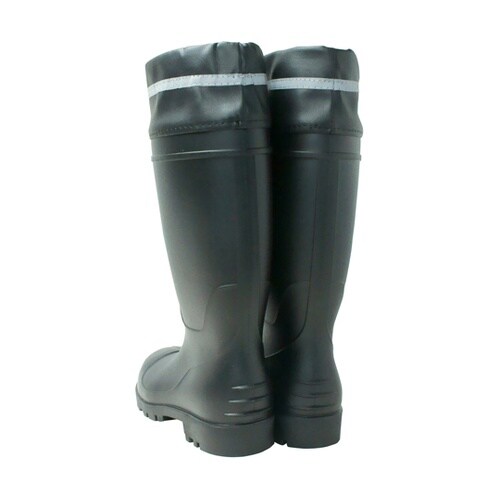 フード付で履き口からの異物の進入を防ぎます。フードの反射テープで夜間でも視認性がアップ。PVC(塩化ビニール製)抗菌防臭裏地付。鋼製先芯入り。クッション性と通気性に優れたEVA製の中敷を搭載し、足の疲 |