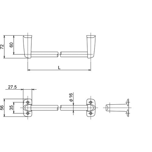 ホテル・住宅に採用されているスタンダード商品。浴室でも使用できる場所を選ばない金属製のタオル掛です。 |