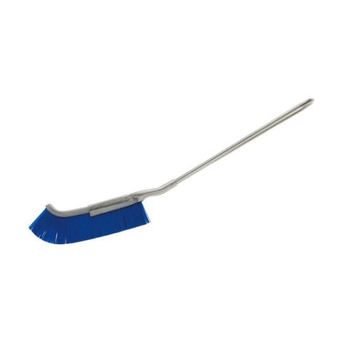 ステンレス製のグリップにより、衛生的でかつ機器隙間等の洗浄に優れたブラシです。毛材のポリブチレンテレフタレートは食品衛生法適合品です。先端を湾曲形状にし、さらに幅を狭くする事で、これまで入りづらかった