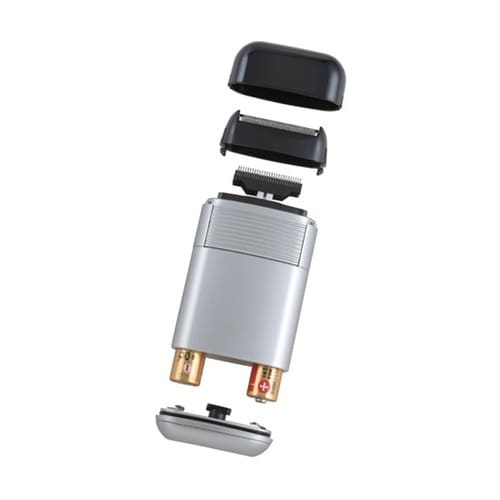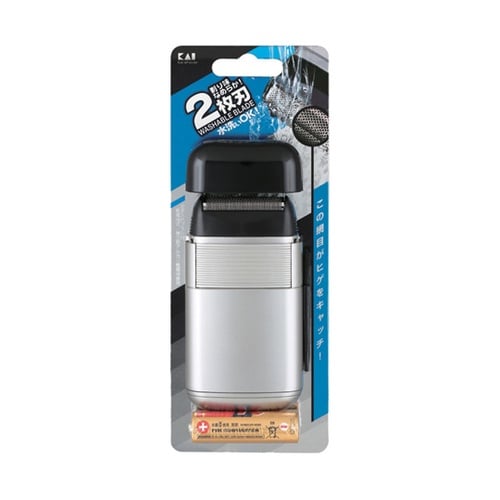 なめらかな剃り味の2枚刃、電池式ポケシェーバーです。水洗いOK、キャップ付き。 |
