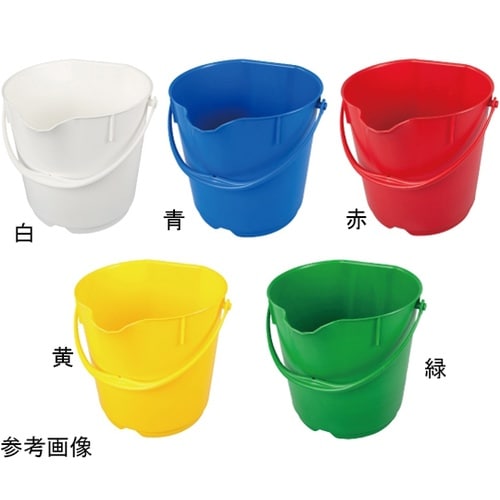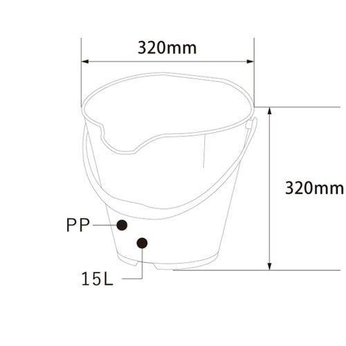 移し替えの際に逆さにしやすい、底面持ち手付きのバケツです。側面にフラットな部分があることで、持ち運ぶ際に身体につけて運ぶことができる。移し替えの際に逆さにしやすい、底面持ち手付き。注ぎ口に細かい切れ目 |