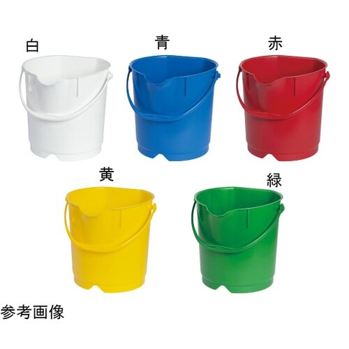 移し替えの際に逆さにしやすい、底面持ち手付きのバケツです。側面にフラットな部分があることで、持ち運ぶ際に身体につけて運ぶことができる。移し替えの際に逆さにしやすい、底面持ち手付き。注ぎ口に細かい切れ目 |