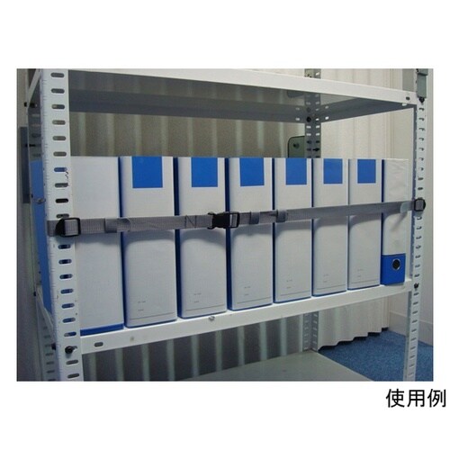 オープン棚に収められた書類、ケースなどの収納物の落下を防止するベルトです。ベルトを、オープン棚の支柱に巻き付けるだけの簡単設置可能なうえ、パイプ型支柱にも使用可能です。ベルトにはズレ落ち防止の滑り止め |