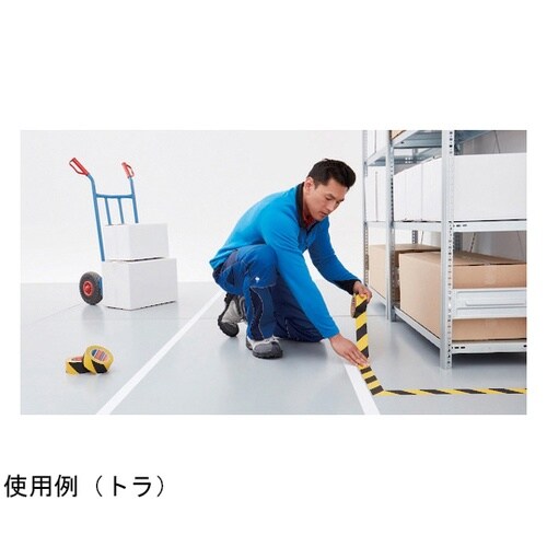 貼るだけできれいなラインが引けます。柔軟性に優れ、粗面やコーナー部への接着にも適しています。強靭かつシワになりません。屋内・屋外兼用。工場、店舗、体育館、倉庫などでのラインマーキング。店舗などの床面で |
