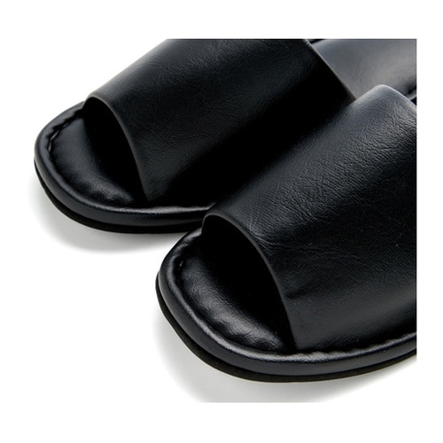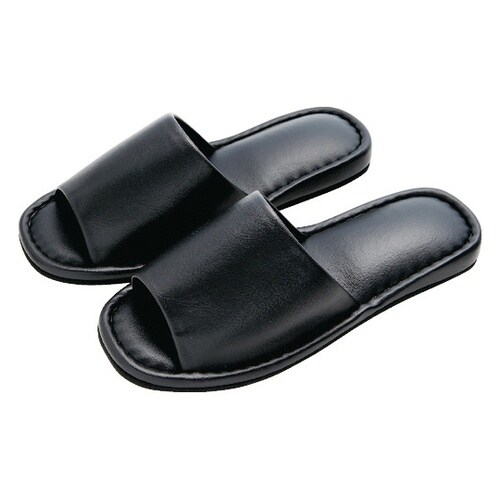 フェイクレザーで高級感があり、厚みがあるため歩きやすいスリッパです。前あきなので通気性抜群です。滑りにくく、来客用にも最適なスリッパです。来客用として。足のムレを気にされ方に。 |