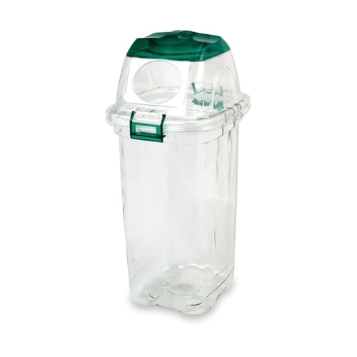 内容物が見える、透明タイプの屑入で分別意識を高めます。分別シール入市販の45L用ポリ袋が使用できます。製品重量の約52%再生素材使用 |