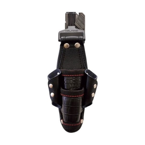 クロコ調の光沢と凹凸が独特の高級感と存在感を放ちます。腰周りの組み換えが簡単な着脱式です。ベルトを外さず途中から差せる後付式ホルダーを採用しています。高強度で作業性の良いしなやかな合成皮革です。幅広い |