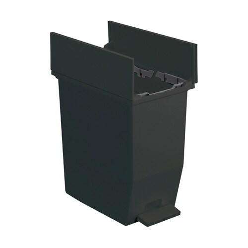 蓋が両サイドへ開くため高さを取らず、コンパクトに納まるペダル式ゴミ箱です。袋止め付背面キャスター付塩ビ不使用 |