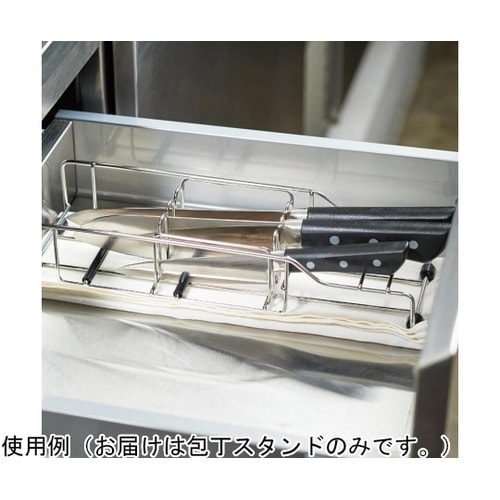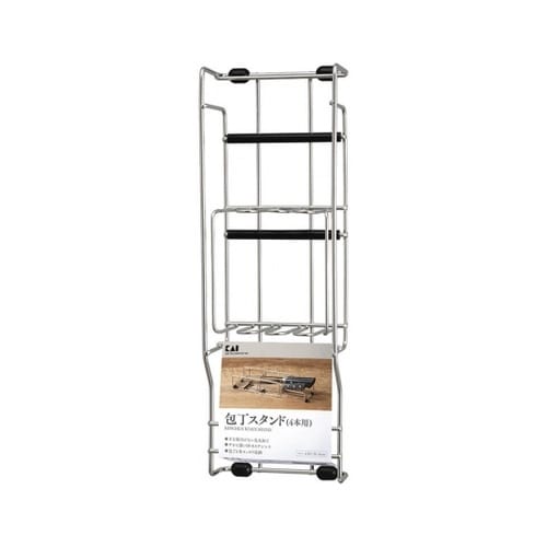 包丁4本をすっきり収納できる平置きタイプの包丁スタンドです。ゴム製クッション付きで包丁の刃を傷めません。 |