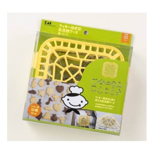 食洗機にそのまま入れて洗うことができるケースとクッキー型10個のセットケースに入れることで食洗機内の水圧でとばされずに洗うことができます |