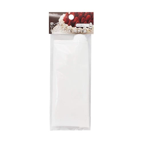 使いやすいリングがついた生クリームしぼり用ポリ袋生クリームを生地にデコレートする時に便利な絞り袋です袋は繰り返し洗って使えるポリエステル樹脂製袋にクリームが入った状態のまま、口金を交換することができる |