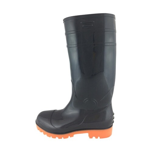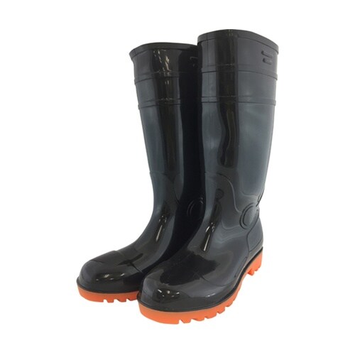 耐油性に優れた配合のPVC(塩化ビニール製)。抗菌防臭裏地付。つま先に鋼製先芯使用、脱ぎ履きしやすいキック付。食品加工から土木、建築作業まで幅広い用途に対応しています。 |