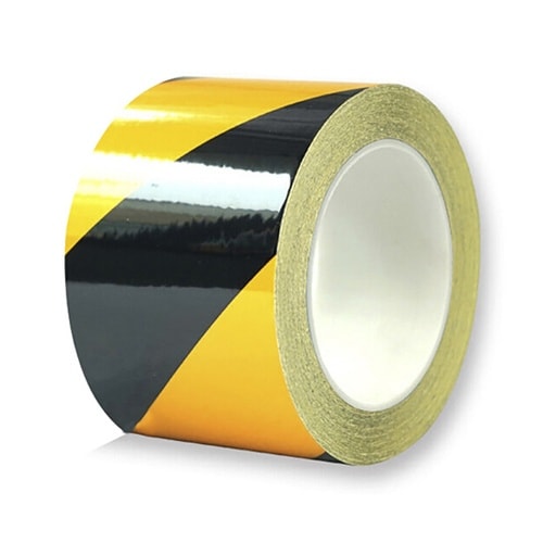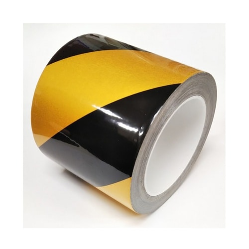 再帰反射ラインテープ 黄/黒 100mm×22m 厚0.16mm 剥離紙有