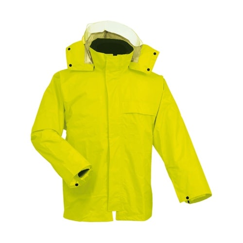 表生地にはPVC素材をラミネートしたことにより、汚れに強く、高い強度を実現しています。深めに設定した二重袖、ダブルフラップ、幅広の見返し(吸上げ防止生地)を装備し、防水性、作業性の高い商品です。視界を |
