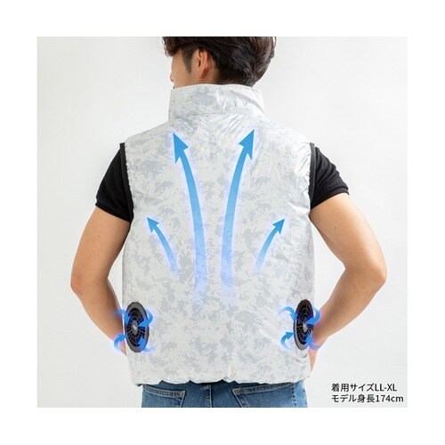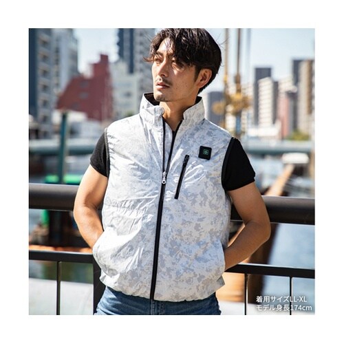 12V/胸スイッチ式 空調ベスト フルセット 裏シルバーチタン加工(シルバープリント柄)M−L