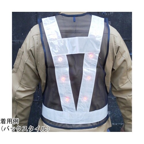 反射テープでしっかり反射、メッシュ素材で軽くて作業性UP。マジックテープで着脱、調整簡単。会社名、血液型タグ付き。 |