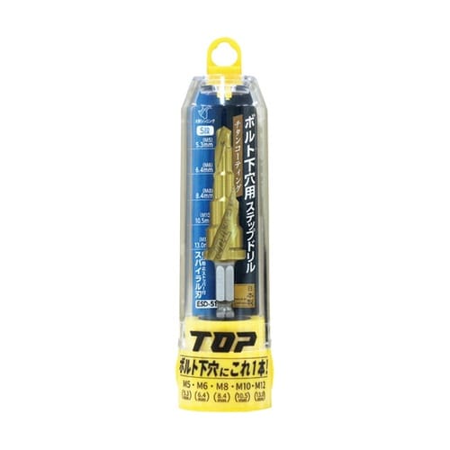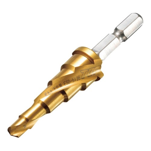 業界初のボルトの下穴専用のステップドリルです。5サイズがひとつになっており、面倒なドリルの取り換え無しで下穴あけができます。食いつきが良く軽い切れ味のスパイラル刃タイプです。チタンコーティングが施され |