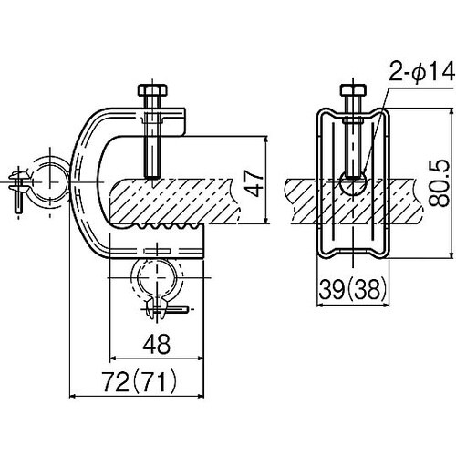 背面部と底面部の2箇所で任意の角度に電線管を支持できます。 |