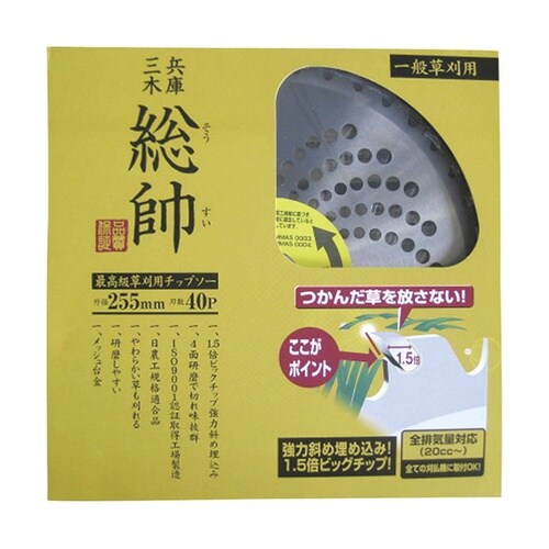 強力斜め埋め込み、1.5倍ビッグチップ。農家の要望から生まれた、超硬チップソー。1.5倍チップで、切れ味と強度を両立。独自のチップ形状で、切れ味抜群。 |