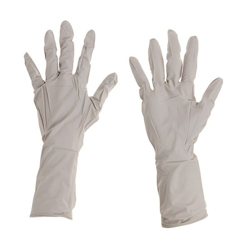クラス10対応の滅菌ニトリルグローブです。1双(左右)毎にパウチ包装してあります。ラテックスのようなフィット感があります。ガンマー線滅菌は25−50KGyの吸収線量です。全長30cmのロングタイプです |