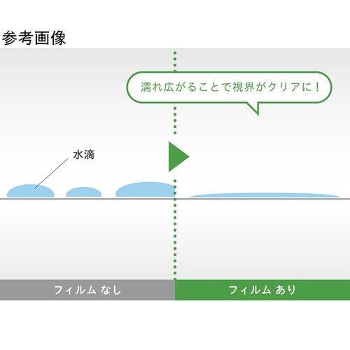 浴室等でフィルム表面に水をかける事で親水効果を発揮し、水滴が玉にならず濡れ広がる事で視界を確保できます。セルフクリーング効果水アカなどの汚れも水だけで簡単に落とせるイージーメンテナンス。ハードコート付 |