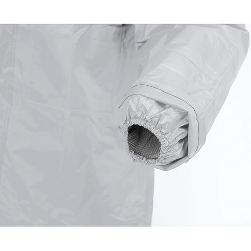 表生地にはPVC素材をラミネートしたことにより、汚れに強く、高い強度を実現しています。深めに設定した二重袖、ダブルフラップ、幅広の見返し(吸上げ防止生地)を装備し、防水性、作業性の高い商品です。視界を |