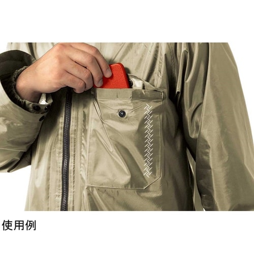 明日を創る職人たちへ。職人が求める機能性と便利さを兼ね備えたレインスーツフロントファスナーの内側にフラップがあるので水滴の侵入をシャットアウトジャケットの袖口は水滴の侵入を防ぐ二重構造を採用安全性を高 |