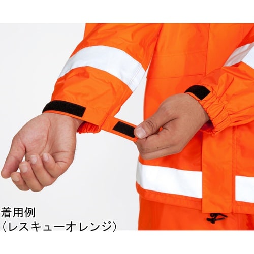 ヘルメット専用インナーフード(標準装備)の採用により、後頭部分と側面部分の雨の侵入を抑え、視界と音を確保します。メットインフードは襟ぐりに収納可。通常フード付き。袖、胸、裾、膝下に高輝度反射帯を採用し