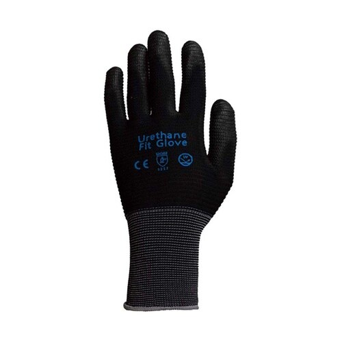 横糸を抜いた特殊なデコボコ編みで手にしっかりフィット。ウレタン手のひらコーティングとデコボコ状の手袋でしっかりとしたグリップ力を実現。薄手かつ背抜きで通気性抜群。汚れが目立ちにくい黒手袋です。