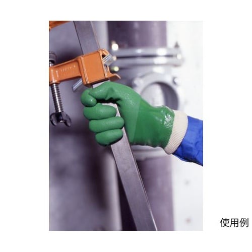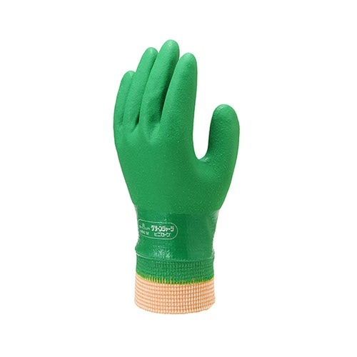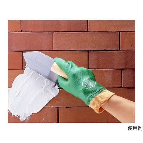 裾口ジャージ加工により、手首部分もサポートします。裏布は編み目が細かく縫い合わせのない、独自の13ゲージ・シームレス編み手袋です。特殊樹脂をコーティングしているため、高いスベリ止め効果を発揮します。裏 |