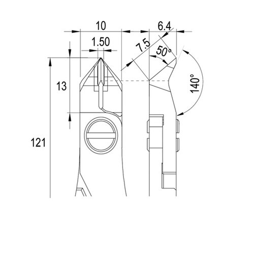 ESD精密ニッパ タングステン先細形50° フルフラッシュ刃 121mm
