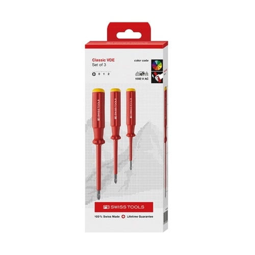 IEC/EN 60900に準拠した絶縁ドライバーセット。手に優しい滑り止めエラストマーカバー。外箱付き。ハイクオリティーペーパーボックス仕様。工具セット内のミニケースとして使用でき、目に留まりやすく、 |