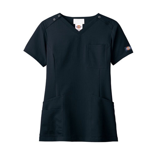 ちょうどよいサイズ感だから動きやすくラフに着られるレディススクラブスナップ式肩ループ▼左肩に携帯電話のストラップを結びつけられるスナップ式ループ付きなので、首にストラップをかけずに携帯電話を持ち運びで |