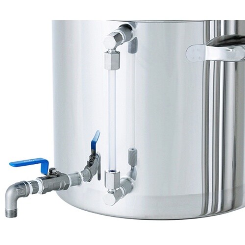 残量が一目で分かるレベル計を取り付けました。小分けをするのに便利なバルブ付きの丸型ステンレス容器です。 |